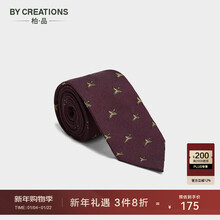 By Creations柏品羊毛真丝动物刺绣商务西装职业正装新郎结婚领带男送礼 暗红色