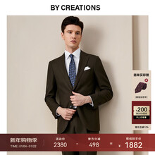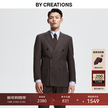 By Creations柏品纯羊毛商务西服套装男人字纹双排扣新郎结婚礼服正装伴郎西装 咖啡色 48 码【西裤尺码可联系客服备注】