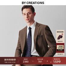 By Creations柏品纯羊毛商务西服套装男冬加厚法兰绒职业通勤正装新郎结婚西装 咖啡色 44 (165/84A)