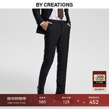 By Creations柏品纯羊毛商务西裤男士高档修身西装便裤职业正装直筒休闲长裤子 黑色 52