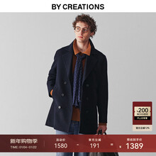 By Creations柏品高克重纯羊毛海军大衣男士重磅保暖商务双排扣毛呢子休闲外套 藏青色 M
