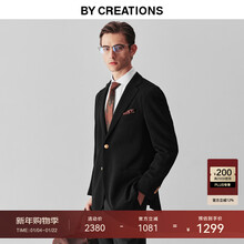 By Creations柏品纯羊毛单西服男士商务修身职业正装布雷泽单排扣休闲西装外套 黑色(单排扣) 50